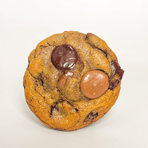 Our cookies are made using a 10-day dough aging process, which allows the flour to fully hydrate, sugars to break down, and flavours to deepen.